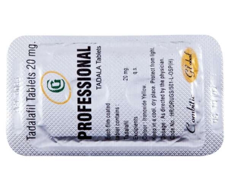 Cialis Professionals aktiva substans är tadalafil, som stöder erektion och bidrar till behandling av erektil dysfunktion i den manliga kroppen. Effekten från Cialis Professional uppenbarar sig 20 minuter efter intag av tabletten, som svalts ner med vatten. Doseringen på 20 mg tadalafil, som finns i en tablett Cialis Professional, passar maximalt 75% av patienter.